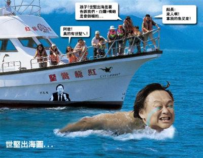 對于跳海計劃大陣仗,王世堅今天上午也坦承,有好幾百個人報名,其中有很多是多年的朋友,也有很多年紀都很大了,所以當(dāng)初尋找適當(dāng)?shù)臅r間和地點,很是費了一番功夫。他今天更證實,的確選在28日,計劃前往臺北萬里瑪鋉魚港跳海。