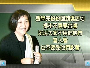 中新網3月19日電 據臺灣媒體報道,挺綠的藝人江霞在18日晚間苗栗縣一場長昌造勢會上,抨擊從海外回臺支持馬蕭的藝人,趕在選舉前回來投票,選后就回僑居地,這種人根本不愛臺灣,并語出驚人地說也不用把他們當人看。