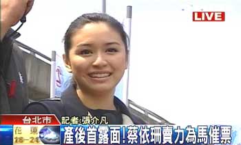 產(chǎn)后首露面 連戰(zhàn)兒媳蔡依珊賣(mài)力為馬英九催票(圖)
