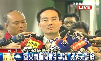 中新網4月24日電 據臺灣TVBS報道,被雜志報道疑似收受軍火商顧問費引發(fā)爭論的臺北市副市長吳秀光,23日大動作控告媒體以及民進黨民意代表后,原本說不再發(fā)言的他,下午4點再度召開記者會。