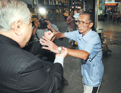 中新網(wǎng)6月19日電 因釣魚島撞船事件被臺當(dāng)局召回的臺當(dāng)局“駐日代表”許世楷18日下午遭一名名叫蘇安生的男子當(dāng)街?jǐn)r阻沖撞,許雖低調(diào)未提出傷害告訴,警方仍依違反社會秩序維護法將蘇某移送法辦。