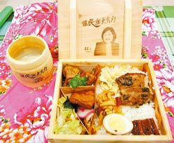 民進(jìn)黨主席蔡英文(左)吃著印有自己肖像的便當(dāng)時(shí),忍不住欣喜滿(mǎn)足,一旁的嘉義縣長(zhǎng)陳明文也津津有味地品嘗。