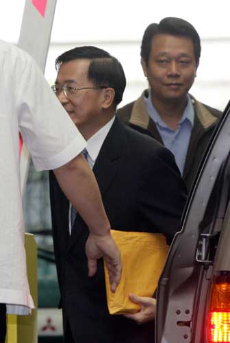 臺灣檢方特偵組偵辦機要費案,三日再度以被告身分傳喚陳水扁到案,說明機要費的支領(lǐng)狀況。陳水扁上午九時三十分進入特偵組。面對媒體詢問,陳水扁不愿回答任何問題。(“中央社”圖)