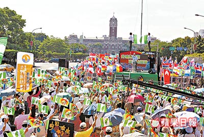 報(bào)道稱,“9.08臺(tái)灣國(guó)”聯(lián)盟每年都會(huì)在9月8日舉行升“臺(tái)灣國(guó)旗”、唱“臺(tái)灣國(guó)歌”《臺(tái)灣翠青》的活動(dòng)。 (周先)