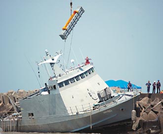 屬于海軍海蛟大隊(duì)的“光華6號(hào)”快艇在24日參加“漢光演習(xí)”時(shí),因?yàn)槌运^(guò)深而擱淺,海軍當(dāng)天趁著漲潮時(shí),派出救援艦艇固定繩索要拖船,沒(méi)想到海浪過(guò)大,拖救繩索斷裂。