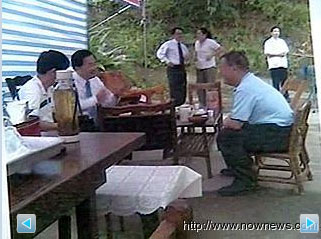 張瑋津表示,照片里,陳水扁身旁的男子,是特偵組檢察官朱朝亮,對面的藍衣男子就是檢察官吳文忠,大家有說有笑,談笑風生。