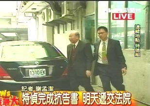 臺(tái)檢方特偵組加緊撰寫抗告書,“檢察總長(zhǎng)”陳聰明到特偵組。(臺(tái)灣TVBS圖)