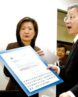 國民黨“立委”李慶安(左)25日發(fā)聲明,即日起暫停行使“立委”職權(quán)及停止領(lǐng)取“立委”薪資。(來源:臺灣《中國時報》)