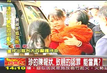 吳淑珍在兒子陳致中的陪同下,于下午2點(diǎn)10分左右,到達(dá)臺(tái)北地方法院開庭,因臺(tái)北地檢署才有無障礙設(shè)施,吳淑珍由北檢進(jìn)入,再搭電梯到北院。