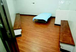 中新網(wǎng)3月4日電 據(jù)臺灣《蘋果日報》報道,陳水扁上周四出庭抱怨無法在候?qū)徥倚菹,引發(fā)名嘴批評法院候?qū)徥矣峙K又臭還有血漬,臺北地院為澄清負面?zhèn)髀劊?日晚破天荒開放媒體參觀候?qū)徥遥F(xiàn)場11間挑高逾3米的囚室,搭配白色的墻面,十分干凈清爽,而且還有空調(diào)調(diào)節(jié)溫度,稱得上是高級牢籠。