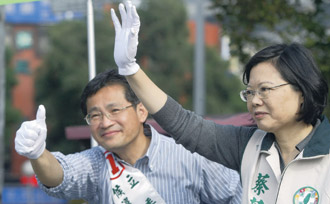 民進黨主席蔡英文與黨籍市議員則陪同周柏雅街頭拜票,她說,藍(lán)綠差距正快速縮小,她對周柏雅的選情樂觀。
