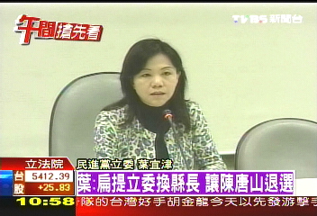 人在臺(tái)北看守所的陳水扁,再度介入民進(jìn)黨臺(tái)南縣長(zhǎng)選舉!“立委”葉宜津證實(shí)23日她去看扁時(shí),阿扁提議要挺她選縣長(zhǎng),若當(dāng)選辭去“立委”之后,阿扁要來(lái)補(bǔ)選這席“立委”,這樣的交換條件,葉宜津說(shuō),她沒(méi)有答應(yīng)。葉宜津表示,“(扁說(shuō))我這一席‘立委’空出來(lái)以后讓他選,陳唐山就會(huì)知難而退,陳水扁提出這一點(diǎn)以后,我就告訴他這不是我能決定的!