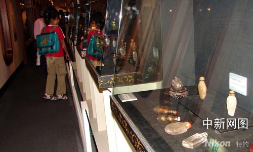 僅僅幾十平方的長廊,卻從容地擺放著二百多件的展品,在這里,能看到翡翠、玉石、瓷器、水晶、竹、牙,也能欣賞到書畫、雕刻、釉彩、銅胎等等,位于臺北市南海路的歷史博物館二樓,八月二十九日下午開始的“臺北鼻煙壺珍品展”,在展示鼻煙壺之精美的同時, 也讓參觀者領(lǐng)略了中華傳統(tǒng)藝術(shù)的博大和豐富內(nèi)涵。