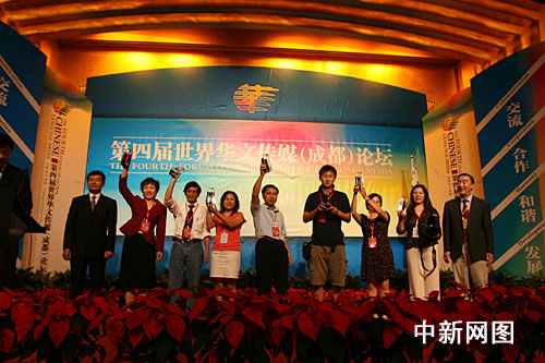 [主持人]: 獲得傳媒機(jī)構(gòu)優(yōu)秀獎的有:關(guān)西華文時報(bào)(日本)、美中晚報(bào)(美國)、亞省時報(bào)(美國)