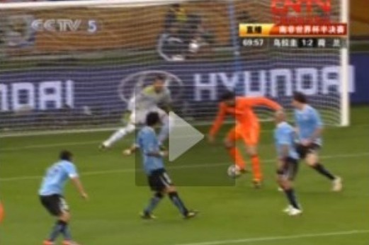 比賽進行到第70分鐘,荷蘭隊中場大將斯內德在禁區(qū)左側遠射攻門,皮球擦著草皮躥向烏拉圭隊的球門,不過,處于越位位置的荷蘭隊前鋒范佩西將球一讓,皮球直接進入了烏拉圭隊的大門。憑借著這個進球,荷蘭隊2比1將比分再次超出。3分鐘后,荷蘭隊利用烏拉圭隊失球后心態(tài)出現(xiàn)問題,由羅本再入一球,鎖定勝局。