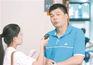 主教練俞覺敏(右)正在接受本報記者采訪