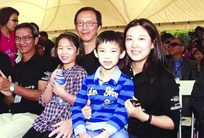為了配合活動(dòng)的需要,伏明霞與老公一同穿上了印有活動(dòng)標(biāo)記的T恤衫,顯得精神干練,而兒女的著裝則要休閑一些,看起來一家四口其樂融融,既是為活動(dòng)添彩,也是同享天倫之樂。