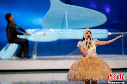 在這一段節(jié)目中,郎朗與章子怡爭做主角,相互“飆歌”。這首美妙的音樂名為《時(shí)光》,浪漫的旋律如夢似幻,郎朗指下藍(lán)色的鋼琴變成了一個(gè)時(shí)間的機(jī)器,隨著音樂穿越時(shí)空。鋼琴演奏與章子怡悅耳的演唱交響在一起,花樣游泳演員伴著她的歌聲在水中翩翩起舞,擺出各種各樣美麗的花朵造型。