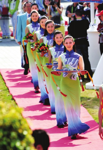 亞運(yùn)禮儀小姐亮相后,不少網(wǎng)友質(zhì)疑了這些姑娘們的衣服有些過緊,顯得太過貼身,身體線條一覽無遺,甚至有網(wǎng)友表示“性感得不好意思看”。不過,昨天,記者現(xiàn)場問了幾位禮儀小姐,以及化妝師,她們都認(rèn)為衣服很好,只是看上去緊。