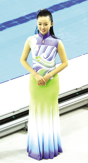 同其他大型活動的禮服不同,“行云流水”的面料有了突破——用泳衣和體操服那樣的彈性面料,代替了傳統(tǒng)的綢緞面料。與此同時,這樣的面料,不需要太多的剪裁,有了彈性,各種體型的禮儀小姐穿上去都合適。不過彈性面料也有不少,有些面料容易褪色,有些面料做出來顏色有偏差。最終,“行云流水”的面料選為滌綸。