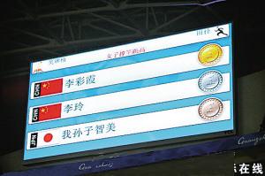 賽場大屏幕顯示女子撐桿跳高的金銀銅牌歸屬