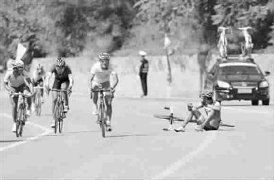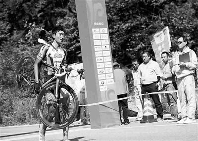 昨天在本溪進(jìn)行的第十二屆全運(yùn)會自行車男子公路個人賽中,解放軍隊選手吳佩倫在臨近終點沖刺時不慎摔倒(見上圖),但是他并未因此放棄比賽,而是扛著自行車走過終點線(見上圖),最終以4小時42分14秒的成績位列第26名。吳佩倫的行為,生動體現(xiàn)了永不言棄的體育精神,賽后他說:“我到這里,不是來聽發(fā)令槍的,而是要沖過終點線的!