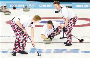 挪威冰壺隊(duì)因?yàn)樗麄兠繄霰負(fù)Q一條時(shí)髦又極其艷麗的運(yùn)動褲,在全球社交網(wǎng)絡(luò)上一夜爆紅。美國《今日體育》報(bào)甚至評論道:“還比什么賽,挪威隊(duì)已經(jīng)贏了!”