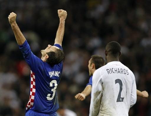 此后,命運的天平似乎在傾向于英格蘭隊。第58分鐘,英格蘭隊后衛(wèi)布里奇在奧里奇的干擾下將球踢在橫梁上,英格蘭隊逃過一劫。此后奧里奇的兩次進攻也都被瓦解。進攻受挫的克羅地亞隊防守上出現(xiàn)疏漏,第65分鐘,英格蘭隊發(fā)起進攻,貝克漢姆拿球后傳中,高中鋒克勞奇胸部停球后掃射破門,將場上比分扳成2比2!英格蘭隊看到了勝利的曙光。