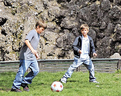中新網(wǎng)4月8日電 據(jù)臺灣《蘋果日報》報道,英國球星貝克漢姆(David Beckham)轉(zhuǎn)戰(zhàn)意大利踢球,他3個兒子只好當(dāng)“空中飛人”,從洛杉磯飛去米蘭,才見得到爸爸。10歲長子布魯克林、6歲次子羅密歐與4歲么子克魯茲日前在保姆陪同下,到當(dāng)?shù)毓珗@玩。三兄弟精力充沛,搶著玩秋千、碰碰車、翹翹板與足球,玩得不亦樂乎。