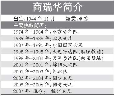 商瑞華是中國女子足壇的元老級人物,中國女足運(yùn)動開端之后的優(yōu)秀球員均在其手下效力過,包括李秀馥、吳偉英、劉愛玲、溫莉蓉、孫雯等人。雖然在率隊(duì)參加的1991年首屆女足世界杯賽上,中國女足因負(fù)于瑞典隊(duì)而無緣4強(qiáng),但這支國家隊(duì)奠定了中國女足在1996年、1999年兩奪世界亞軍的基礎(chǔ)。離開主教練崗位后,商瑞華曾先后以助理教練的身份執(zhí)教男足的大連萬達(dá)隊(duì)、天津泰達(dá)隊(duì),擔(dān)任過四川綿陽隊(duì)主教練,隨后又任職河北女足、中國女足青年隊(duì),目前在杭州女足任教。