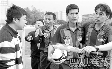 2008年5月底,川足客場遭遇上海東亞,莫偉聰在比賽中,連續(xù)對騰彬并不嚴(yán)重的犯規(guī)出示黃牌將其罰下,緊接著又將表達(dá)不滿的助理教練孟憲鵬送上看臺,時任川足副總的魏群一怒之下沖進(jìn)賽場。幾天后,中國足協(xié)對川足開出重磅罰單:魏群停賽8場罰款8000元,楊哲、孟憲鵬各停6場罰款6000元,川足高層一度萌生退意。