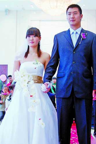 昨天,兩位河南的籃球明星在黃河迎賓館喜結(jié)連理,新郎是原國家隊隊員薛玉洋(現(xiàn)在新疆廣匯隊打球),新娘是河南女籃的程誠。兩人原計劃在2008年8月8日奧運會開幕當天大婚,由于訓練、比賽任務(wù)繁重,兩人只好提前趁著聯(lián)賽間隙把終身大事給辦了。