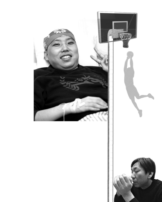 在醫(yī)大住院部走廊里與記者交談的過程中,王屾的母親幾度潸然淚下,可是出現(xiàn)在王屾面前時,母親永遠是滿臉笑容,“我在兒子面前從沒掉過淚,兒子躺在病床上,做家長的不能倒下!蓖鯇娴母改笌啄昵跋聧,母親做了兩次大手術(shù),父親又患有高血壓,兩人將所有的精力和積蓄都用在培養(yǎng)王屾上,可是就在王屾在籃壇終于嶄露頭角時,一場重病讓這個希望之星的道路充滿了崎嶇。背著兒子偷偷賣掉了阜新的房子后,王屾的父母一直在沈陽陪伴著王屾,每天24小時守在醫(yī)院,“現(xiàn)在我們?nèi)谌俗叩侥膬耗木褪羌伊恕!?/p>