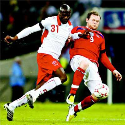 盡管采用了“四五一”的單前鋒陣型,但魯尼獲得的射門機會并不少,下半時初段他就三次射門,其中一次單刀、一次吊射和一腳遠射?上(lián)前鋒并非頂級射手,浪費了本特利兩次時機和精準度都極佳的傳球。第58分鐘,巴內(nèi)塔抓往英格蘭右后衛(wèi)布朗站位的一次失誤直傳其身后,德迪約克乘虛而入,一腳低平的斜射中的,替瑞士扳平了比分,也讓屢屢浪費機會的主隊受到了懲罰。出人意料的卡佩羅面對失球出奇得平靜,他甚至為年僅19歲的德迪約克鼓掌。