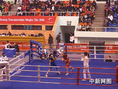 中新網寧波11月22日電(何蔣勇)2008世界女子拳擊錦標賽今天下午在寧波拉開戰(zhàn)幕。本屆賽事由國際拳擊聯(lián)合會主辦,中國拳擊協(xié)會、寧波市人民政府承辦。這是世界女子拳擊錦標賽首次在中國舉辦,也是寧波體育史上舉辦最高檔次的體育大賽之一。