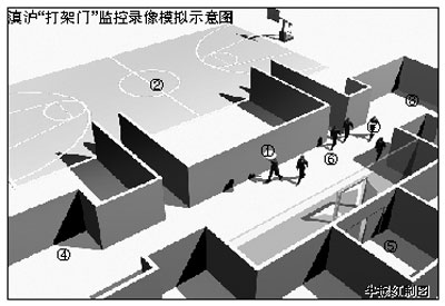 備注:攝像頭當(dāng)時正對的方向為客隊休息室,攝像頭背面為主隊休息室。本版所示為部分視頻翻拍圖