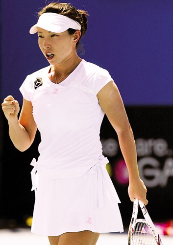 “中國(guó)潔”前天俏麗登場(chǎng),一身純白裝扮在蔚藍(lán)色的場(chǎng)地中顯得格外明亮。“單飛”后鄭潔與新的服裝贊助商簽約,她的球衣不再像過(guò)去那么隨大流,特別是上衣下擺的兩個(gè)蝴蝶結(jié),透出一點(diǎn)時(shí)裝味。