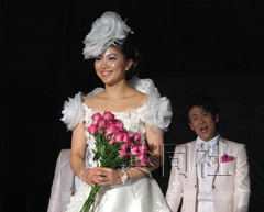 中新網(wǎng)2月18日電 據(jù)共同社報(bào)道,北京奧運(yùn)羽毛球女雙“潮田/小椋”組合中的一員、日本羽毛球名將潮田玲子17日在東京舉行的著名設(shè)計(jì)師桂由美婚紗秀上擔(dān)任模特,首次走上了T型臺(tái)。