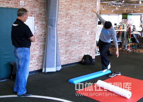 2008年12月20日,術(shù)后的劉翔在休斯頓進行康復(fù)訓(xùn)練。
