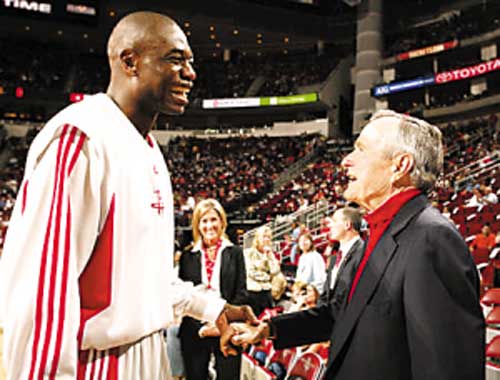 穆大叔的親密戰(zhàn)友姚明、弗朗西斯都拄著拐杖到場支持,見證這一光輝時(shí)刻!值得注意的是,就連美國前總統(tǒng)老布什也親臨現(xiàn)場,為穆大叔送祝福。而斯特恩則親自為穆托姆博頒獎(jiǎng)。在頒獎(jiǎng)慶典上,火箭老板亞歷山大代表火箭隊(duì),向穆托姆博醫(yī)院捐贈(zèng)50萬美元,這也是對這位令人尊敬的老將的一份獎(jiǎng)勵(lì)。
