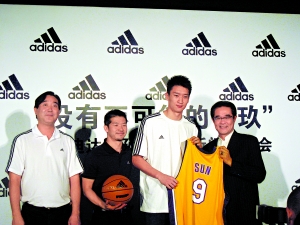 今天上午,阿迪達(dá)斯在其全球品牌中心與素有“全能后衛(wèi)”之稱的中國(guó)籃球運(yùn)動(dòng)員孫悅舉行了簽約新聞發(fā)布會(huì)。孫悅下周即將出征NBA,此番加盟阿迪達(dá)斯為其踏上國(guó)際化征程注入了強(qiáng)心劑。孫悅的加入,令阿迪達(dá)斯籃球明星隊(duì)伍一再擴(kuò)大。孫悅在湖人隊(duì)的號(hào)碼是9號(hào),阿迪達(dá)斯也特意選取9月9日9時(shí)9分作為簽約發(fā)布會(huì)的時(shí)間,并以“沒有不可能的‘玖’”作為發(fā)布會(huì)主題來(lái)強(qiáng)調(diào)此次合作的重要意義。作為入選NBA的第一個(gè)打外線位置的中國(guó)球員,孫悅在NBA聯(lián)盟和湖人隊(duì)中將經(jīng)歷更多的磨練。