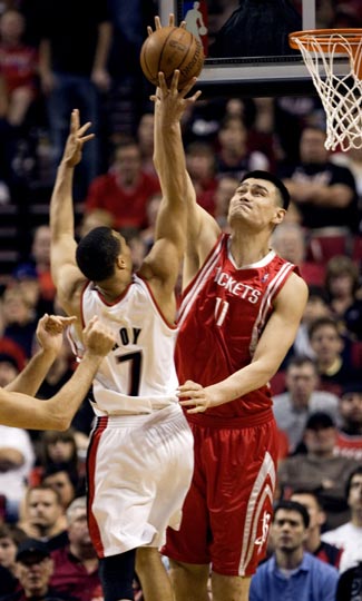 中新網(wǎng)4月19日電 北京時間4月19日,火箭旗開得勝,在季后賽首輪的第一場比賽中客場以108-81輕取開拓者。姚明在短短24分鐘內(nèi)9投9中得到24分9個籃板2次蓋帽。