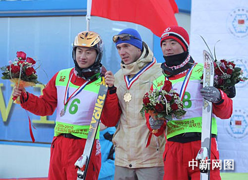 在上午的男子預(yù)賽中,都靈奧運會冠軍韓曉鵬由于發(fā)揮失誤,未能晉級決賽。中國兩位小將劉忠慶和吳超發(fā)揮出色,分別獲得亞軍和季軍,男子冠軍被白俄羅斯的KUSHNIR Anton奪得。