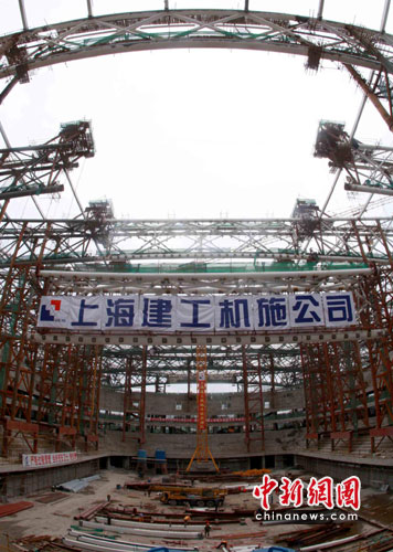 中新網(wǎng)上海3月30日電 (鄭瑩瑩 黃晨光)30日,上海建工機(jī)施公司建設(shè)者將最后一榀重65噸的鋼桁架起吊至上海東方體育中心的綜合館40米高的預(yù)定位置,標(biāo)志著該工程主體鋼結(jié)構(gòu)安裝全部完成。