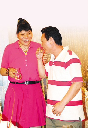 上午10點(diǎn)30分,一輛寶藍(lán)色的本田商務(wù)車抵達(dá)酒店門前,身著一襲寶藍(lán)色連衣裙的鄭海霞和西裝筆挺的夫婿徐慶華下車后迅速進(jìn)入酒店,路人甚至都沒來得及認(rèn)出海霞。11點(diǎn)30分,在一間不大的會議室內(nèi),隨著現(xiàn)場輕柔的樂曲,司儀宣布婚禮開始,現(xiàn)場100多位嘉賓、親友聚攏在婚禮臺四周,一同目睹了鄭海霞與丈夫徐慶華的優(yōu)雅現(xiàn)身。盡管對于此次婚禮鄭海霞夫婦一再要求低調(diào),但在前天的婚禮現(xiàn)場,一些必要的程序還是照常進(jìn)行。大概是要難為一下昔日的“亞洲女籃第一中鋒”,現(xiàn)場司儀要求海霞對婆婆改口時(shí)用標(biāo)準(zhǔn)的河南話喊一聲“娘”,惹得見過無數(shù)大世面的鄭海霞當(dāng)場紅臉。但在親友們的一再鼓勵(lì)下,海霞還是羞澀地完成了任務(wù),大喊了一聲“娘”。