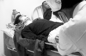 昨晚7時(shí)許,經(jīng)過兩小時(shí)的手術(shù),李明被送入監(jiān)護(hù)病房。醫(yī)生表示,其頸部、臉部被刀割傷,傷口不深,但都有七八厘米長,分別縫合17針和13針,此外,傷者左手虎口位置還有一處三角形狀的傷口,縫合4針。暫時(shí)無法說話,無生命危險(xiǎn)。