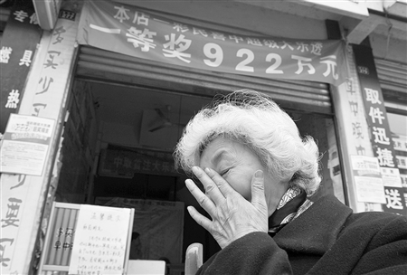 前晚24時(shí),省體彩中心宣布922萬元大獎(jiǎng)被棄領(lǐng),這起事件本已塵埃落定,但昨日事情又出現(xiàn)波折:盡管手上沒有中獎(jiǎng)的那張彩票,也記不清楚中間的幾位數(shù)字,滿頭銀發(fā)的胡慧瓊昨日中午依然第3次來到都江堰景環(huán)路277號(hào)體彩銷售點(diǎn),她堅(jiān)信自己就是那位922萬元大獎(jiǎng)的得主。