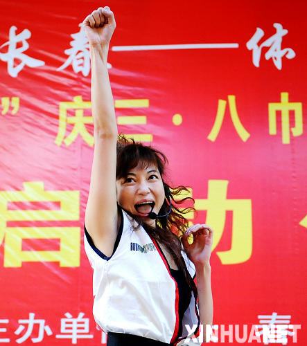 3月8日,長春市民在啟動儀式上表演健美操。當日,由長春市體育局主辦的“慶三八巾幗風采系列健身活動”正式啟動。此次活動歷時3天,包括健身咨詢、體質(zhì)檢測、健身展示、健身指導等內(nèi)容。