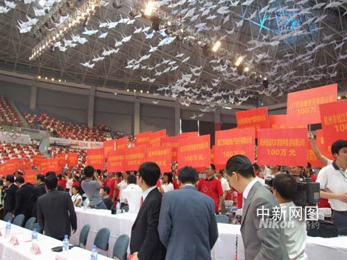 浙江各個企業(yè)紛紛為四川災(zāi)區(qū)人民奉獻愛心。作者:周翌