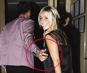 雷德克納普背對(duì)妻子伸出右手似乎想拉住露易絲的手臂,然而由于她正轉(zhuǎn)身面對(duì)鏡頭,于是雷德克納普的手掌卻不偏不倚地落在了胸部,而這一幕恰好被門口的一眾攝影師抓個(gè)正著。對(duì)于自己抓住了妻子的什么部位,小雷德克納普似乎毫無(wú)感覺(jué),但面對(duì)鏡頭的露易絲則沒(méi)有這么好運(yùn),她只能尷尬地與攝影師們開笑說(shuō)丈夫只是順手。